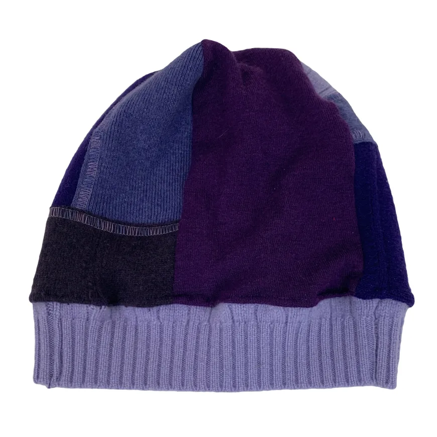These slouchy hats are made from a patchwork of 100% recycled, slightly felted, cashmere. The loose fitting ribbed br…